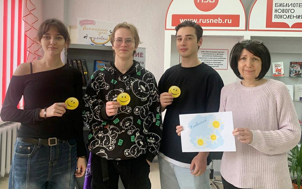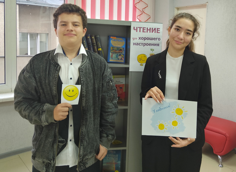 К Всемирному дню улыбки, отмечаемому в начале октября, в Центральной городской библиотеке им. М. Горького читателей юношеского абонемента ждал сюрприз, подготовленный библиотекарями: сувенирный смайлик и рекомендация книги, повышающей настроение.