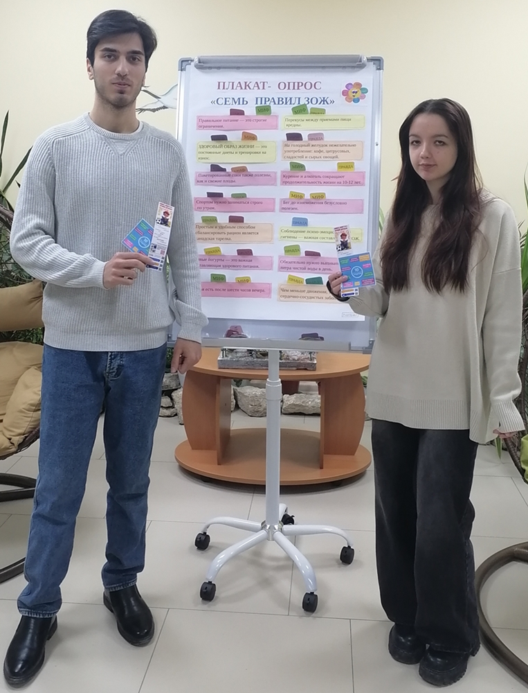Всем желающим библиотекари отдела естественно-научной и технической литературы предлагали, прочитав 14 фраз на тему здорового образа жизни, прикрепить стикеры со словами: «Правда» или «Миф» к той фразе, которую они считают правдой, а какую, соответственно, мифом. Участники опроса узнали много полезных, но малоизвестных фактов о правильном и сбалансированном питании, о том, как важно соблюдать режим дня, какое время суток лучше уделить спорту. А главное: что ЗОЖ – это не изнуряющие диеты и нагрузки, а правильный осознанный подход к своему здоровью.