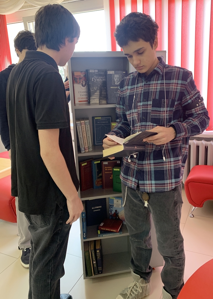 Главный литературный юбилей этого месяца – 140 лет со дня рождения поэта Серебряного века, прозаика, драматурга, литературного критика, путешественника, исследовавшего Африку, человека яркой, но трагической судьбы Николая Гумилёва. Книжно-иллюстративные выставки, посвящённые ему, оформлены на общем и юношеском абонементах и в общем читальном зале. Расстрелянный большевиками в августе 1921 года по шитому белыми нитками Таганскому делу, а после казни вместе с другими жертвами зарытому так, чтобы тело его не смогли никогда найти, он не умер насовсем в отличие от своих палачей, безвестно и бесславно сгинувших во времени. Тиражам, которыми переиздаются из года в год его произведения, могут позавидовать даже некоторые современные авторы с распиаренными именами, но которых и близко нельзя сравнить в виртуозном владении поэтическим и прозаическим словом с Николаем Гумилёвым.