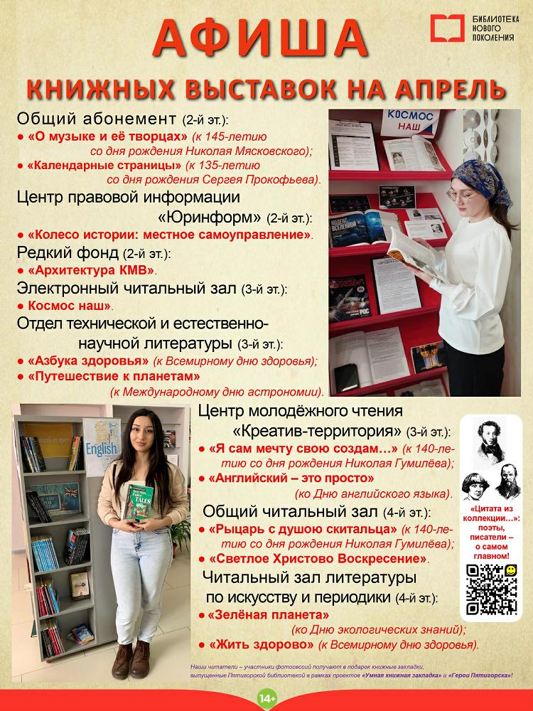 Новые книжные и книжно-иллюстративные выставки ждут Вас в апреле и во всех библиотеках-филиалах Пятигорска!
