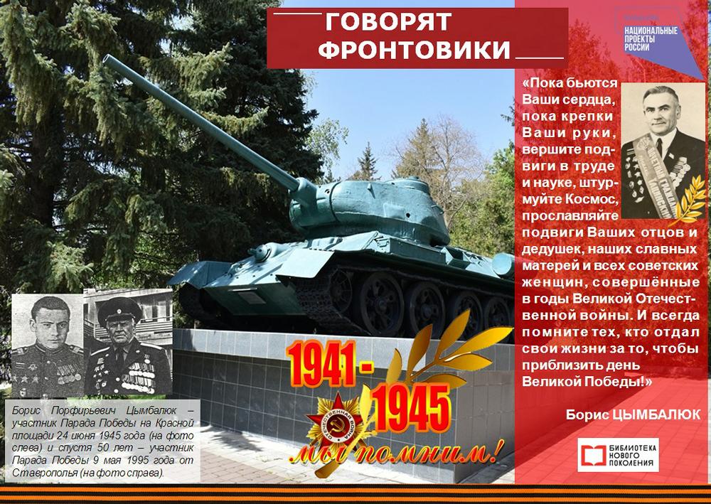 Участниками Сталинградской битвы было немало пятигорчан, один из них – механик-водитель танка Т-34 Борис Порфирьевич Цымбалюк, с которым мне посчастливилось быть знакомым, он жил в доме напротив, и о котором, как и о других воинах-пятигорчанах Вы можете узнать подробнее из очерков в рамках проекта «Говорят фронтовики».