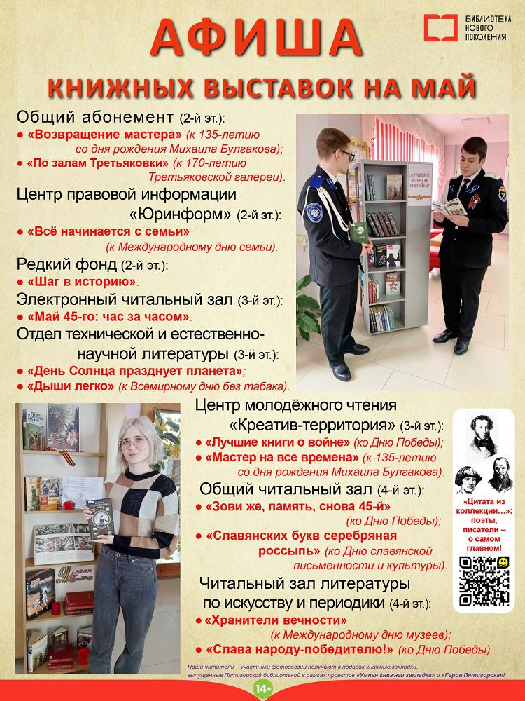 Новые книжные и книжно-иллюстративные выставки ждут Вас в мае и во всех библиотеках-филиалах Пятигорска!