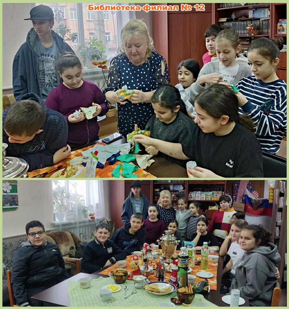 В библиотеке-филиале 12 для постоянных читателей-школьников был подготовлен праздник «Масленица идёт, блины да радость несёт» с играми и мастер-классом по изготовлению русской народной куклы-закрутки.