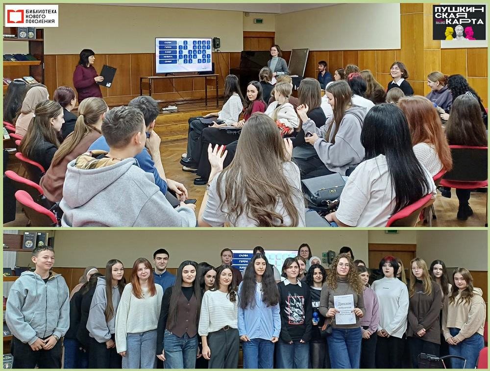 Студенты Российского государственного социального университета пришли в Центральную городскую библиотеку им. М. Горького, чтобы принять участие в интеллектуально-познавательном турнире «Игры разумов» в рамках федерального проекта «Пушкинская карта».