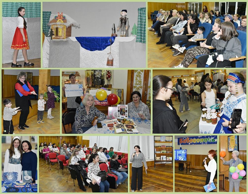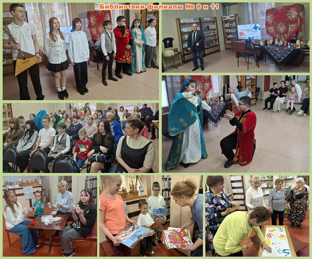 Кроме этого, события «Библионочи» проходили в этом году в библиотеке-филиале № 8, где гостей ожидали удивительные сюжеты национальных сказок и былин народов нашей страны в литературном круизе «По следам народных сказаний и легенд» с мастер-классом по расписыванию матрёшек. А в библиотеке-филиале № 11 постоянные читатели приняли участие в акции «Сказки народов России», в экспромт-инсценировках «Сказочная кутерьма» и оформлении арт-объекта «Ладошка дружбы».