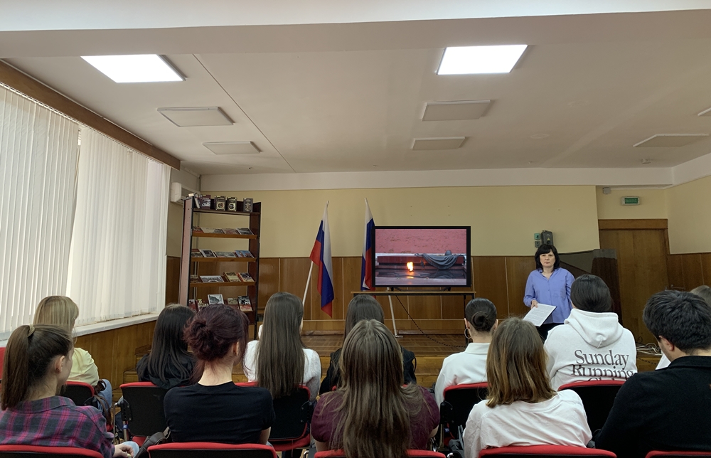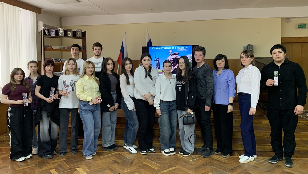 Вместе с библиотекарем молодёжного отдела Ириной Михалевой студенты РГСУ совершили виртуальную экскурсию и узнали больше о Великой Отечественной войне через историю её памятников. Они виртуально посетили Мамаев курган, Могилу Неизвестного Солдата, Прохоровское поле, мемориальный комплекс в Маутхаузене, Хатынь, Новороссийск, Воронеж и другие города, где стоят не самые знаменитые и не самые масштабные памятники, но их истории никого не оставляют равнодушным.