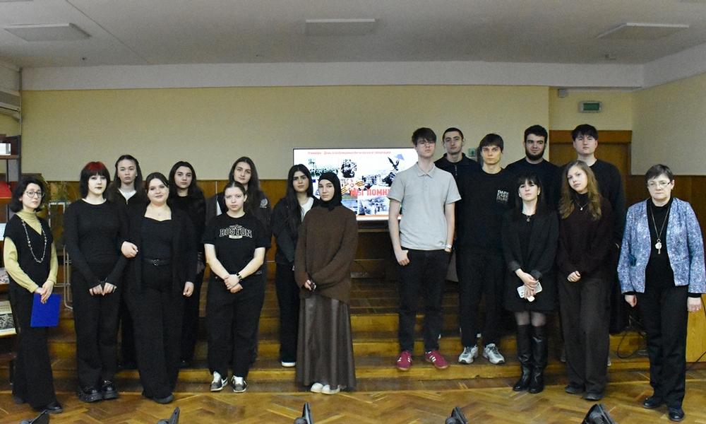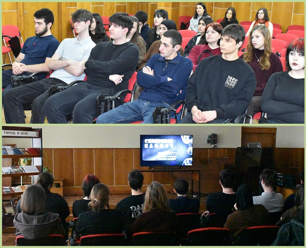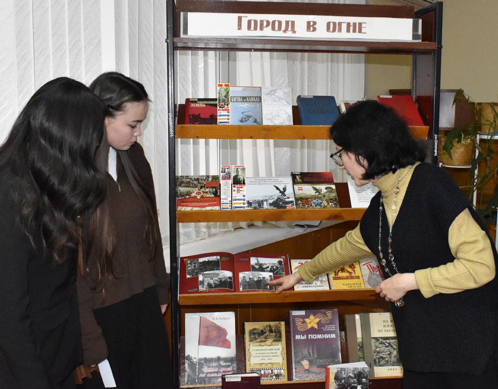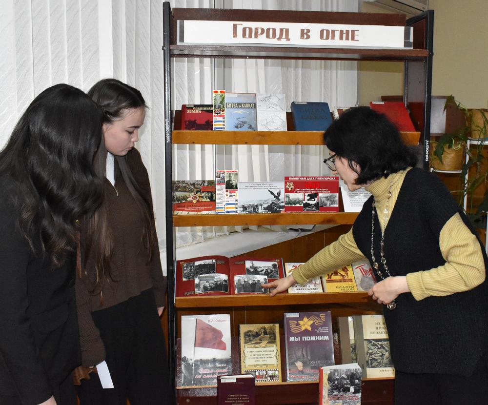 Библиотекари отдела обслуживания Светлана Круско и Александра Рященко, рассказали студентам о пяти страшных месяцах фашисткой оккупации и испытаниях, выпавших на долю жителей города, о подвигах его защитников – лейтенанта Германа Пестова, совершившего с группой курсантов Полтавского тракторного училища рейд в частично оккупированный Пятигорск, и военной разведчицы Нины Попцовой, казнённой фашистами за 5 дней до отступления. Гости услышали стихотворение Л. Гориловского «Мы входим в Пятигорск», опубликованное через несколько дней после освобождения города.