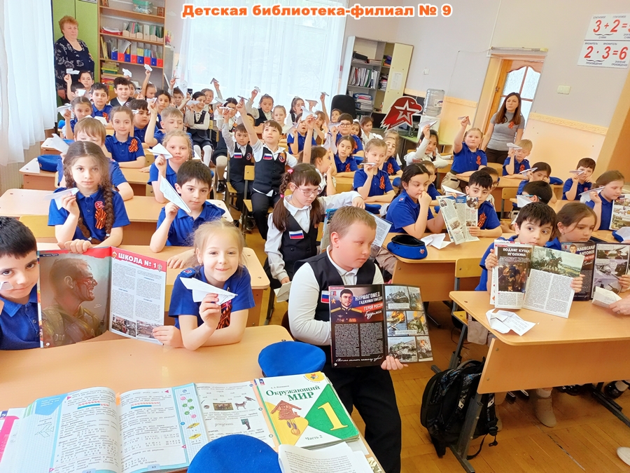 Сотрудники детской библиотеки-филиала № 9 побывали в лицее № 20 у учеников 1-х классов с историческим экскурсом «Россия – кузница героев» в поддержку военнослужащих, находящихся в зоне СВО. Библиотекари познакомили ребят с книгами и журналами, посвящёнными Героям России, участвовавшим в различных военных операциях и отдавшим жизни за родное Отечество. Поговорили с первоклассниками о русских богатырях, полководцах, космонавтах, учёных, врачах, полицейских и учителях. Отдельное внимание уделили книгам о войне и журналам о Героях СВО и других военных операций. Юные патриоты приняли участие в викторине «Твои защитники», складывали солдатский треугольник, собирали вещмешок и «ходили в атаку».